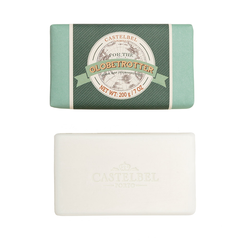 Castelbel’s Globetrotter Fragranced Soap impresses with an attractive and subtle scent of herbal mint. It is essential for all world travelers that they are provided with the right products for their explorations. Here, the refreshing aroma of herbal menthol revitalises the skin while the delicious scent lifts the spirits, perfect for life on the go! The soap is made of 100% natural materials and the ingredients are purely vegetable based. The soap forms a creamy, textured lather and is pampering for the skin. The soap is hand stamped and hand packed to complete the artisan touch. Castelbel’s Globetrotter soap allows you to enjoy affordable luxury every day.