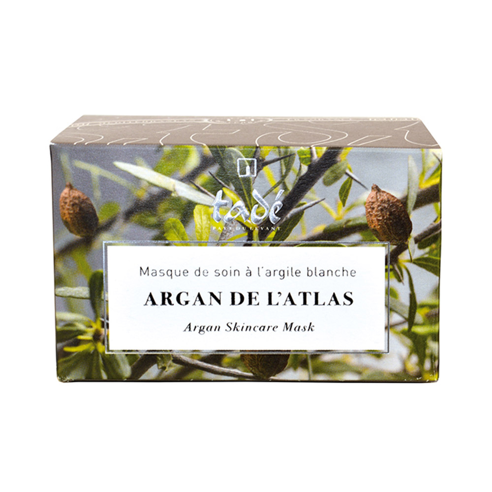 Tadé’s Argan Skincare Mask is a natural white clay mask enriched with argan oil for purifying and replenishing the face and body. The ingredients, laden with active minerals and essential fatty acids, protect, nurture and moisturize the skin. The presence of argan oil ensures a pleasant and lasting feeling the whole day long. Suitable for all skin types, particularly for those with dry and sensitive skin.