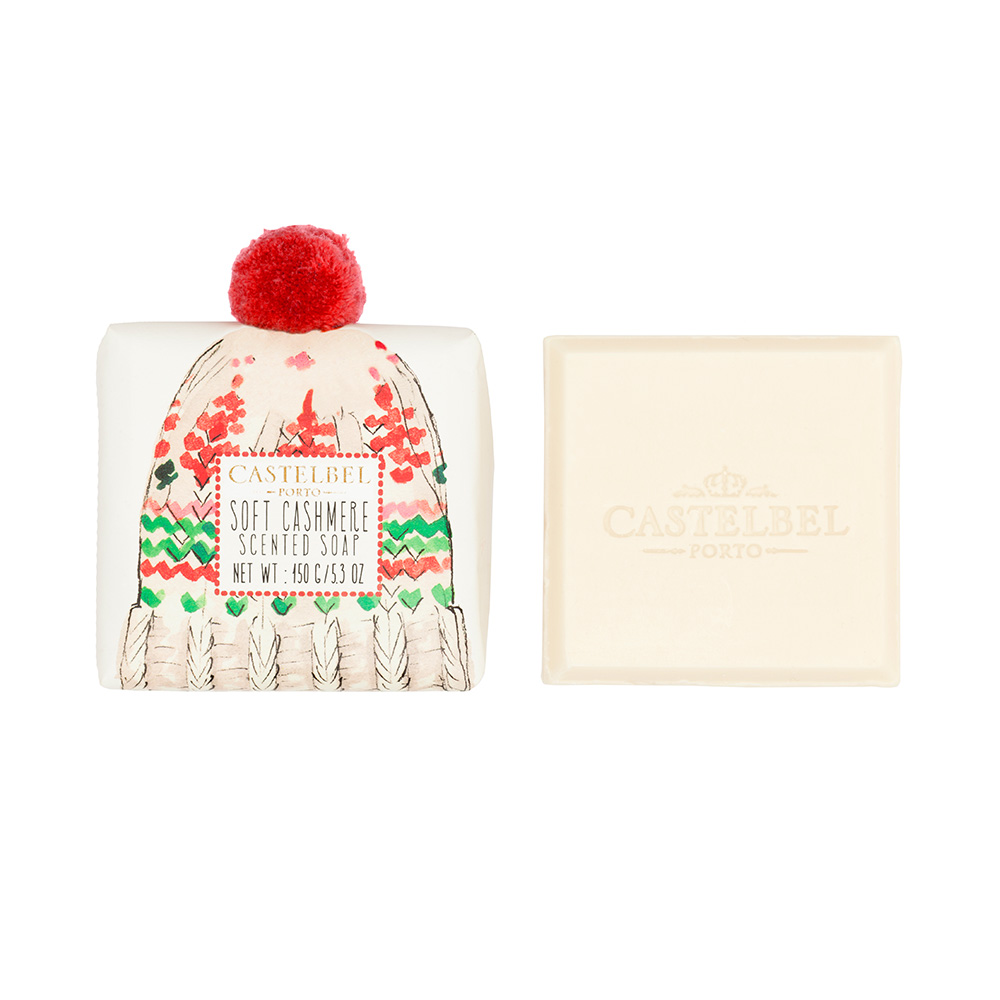 Castelbel Karácsonyi finom kasmír szappan édes, frissítő és kellemesen gyümölcsös aromájú. A szappant kézzel csomagolják egy kasmír pulóverbe. A Castelbel Karácsonyi finom kasmír szappant a szeretettel kötött kényelmes téli pulóverek inspirálták, amelyek melegebbé teszik szeretteink szívét.