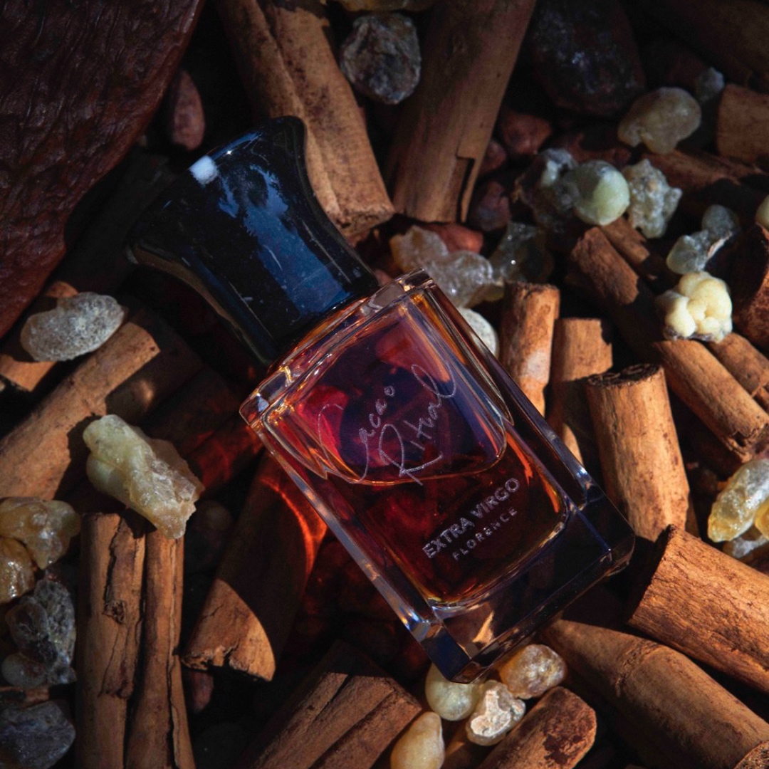 Extra Virgo teljesen természetes kakaó abszolútuma három különböző közép-amerikai fajtából származik: Kolumbiából, Hondurasból és Nicaraguából. Ezek a ritka abszolútumok a pörkölt kakaóbab érzékien melengető aromáit rejtik – felolvasztó, érzéki és kifinomult. A kakaó jegyei összefonódnak egy kis csokornyi marokkói jázmin abszolútummal, amely csillagként ragyog a sötét éjszakai égbolton. A hatás édes és éteri, a sötétség és a fény egyesülését alkotja, mint egy narkotikus tánc a csillagok alatt. Extra Virgo jellegzetes fűszerkeverékében a Srí Lanka-i fahéj és az indonéz szegfűszeg vintage cibettel és castoreummal keverve egyedi érzékiséget áraszt. Édes, sötét és fűszeres, Cacao Ritual épp olyan, mint két szerelmes ölelése az éjszakában.