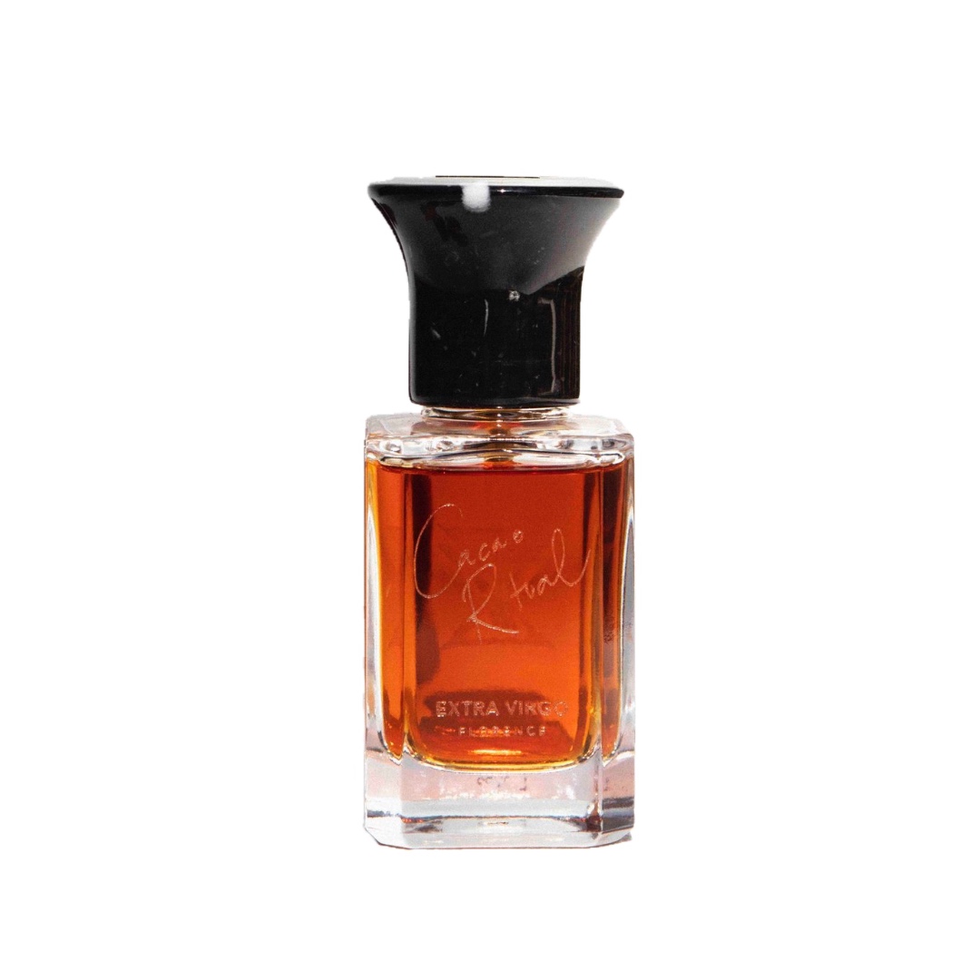 Extra Virgo Cacao Ritual (Extrait de Parfum) egy csábító, rendkívül érzéki bájital, amely a kakaó legsötétebb, legnyersebb és legelegánsabb oldalát mutatja be. A kakaó az istenek tápláléka, egy ősi és nemes fa Közép- és Dél-Amerikában, amelyet régóta a legszentebb növényként tiszteltek, és amely csak a legmagasabb rangú nemesség és maguk az istenek számára volt elérhető. Extra Virgo Cacao Ritual egy szerelmes levél az ősi gyakorlathoz, amelyben a kakaóbab erejét hasznosítják, felfedve édes, afrodiziáló és szíveket megnyitó aromáit.