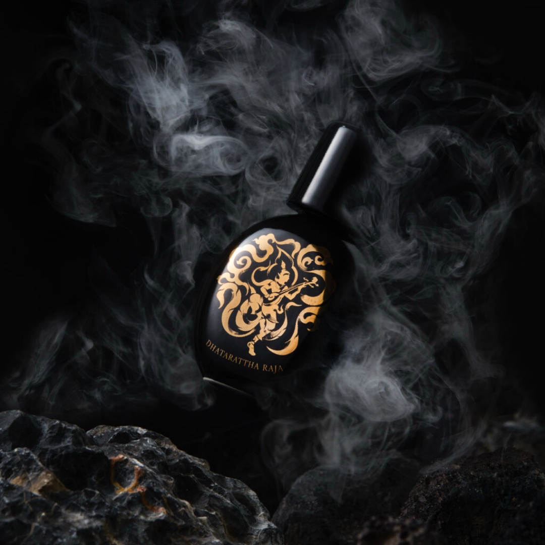 SIAM1928 Dhatarattha Raja parfümös szívébe aranyló meleg virágzik. A mézes szalmagyopár és a gyantás cistus összefonódik a rózsa időtlen szépségével és az osmanthus sárgabarackos ragyogásával. A levendula fűszeres nyugalommal szövi át a virágcsokrot, míg a gyömbér, a szerecsendió és a kardamom fűszeres ritmust adnak hozzá, idézve a Gandharvas zenéjét. Strukturált, mégis tele élettel.